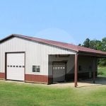 40x41x12 All Vertical Deluxe garage, vertical sides and end wall paneling, 3′ deluxe package around the bottom, (1) 12×12 metal roll up door and (1) 36″ x  80″ walk in door.  Customer must provide a lift for installation.